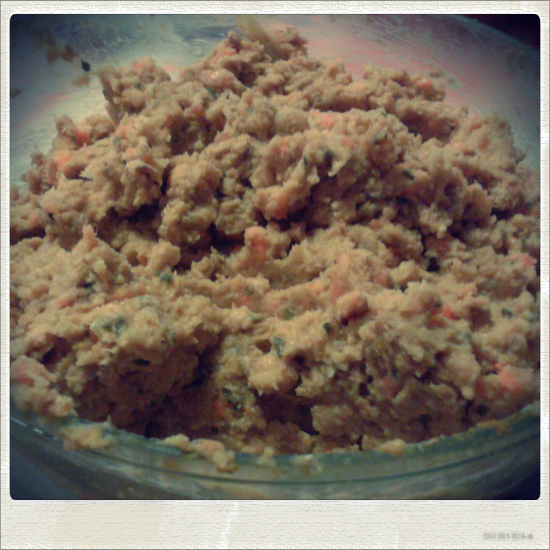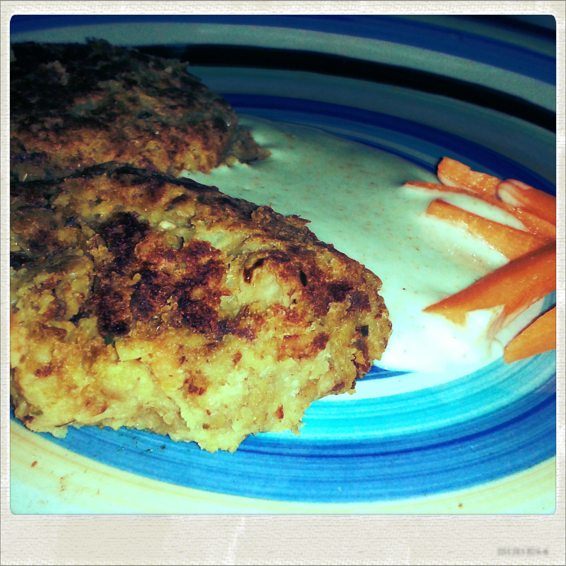 A questo punto aggiungo la farina di mais, 5 cucchiai di olio, 1 cucchiaio di salsa allo yogurt, il curry, il prezzemolo e una generosa macinata di pepe e richiamo a rapporto il mio minipimer! Quile scuole di pensiero sono due, o usate il minipimer, ottenendo un composto più grossolano, oppure usateil frullatore per avere un composto omogeneo. Io personalmente preferisco il minipimer, ma credosi fosse già capito. Dopo aver frullato il tutto, il composto dovrebbe risultare più o meno come in foto. Se fosse troppo liquido aggiungete un po’ di farina di mais, se al contrario è troppo denso, aggiungete un paio di cucchiai di acqua tiepida.